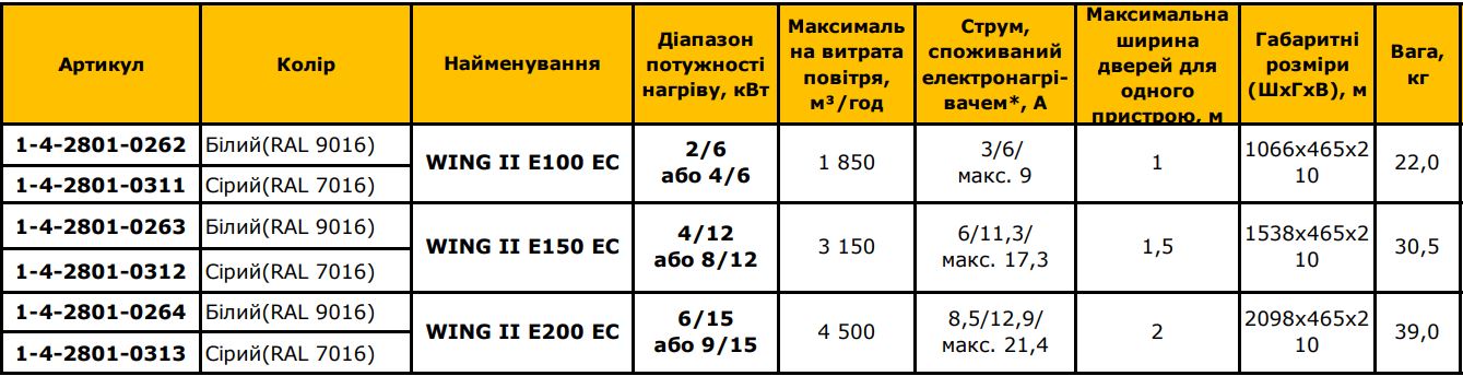 Электрическая тепловая завеса WING II E150 (EC)