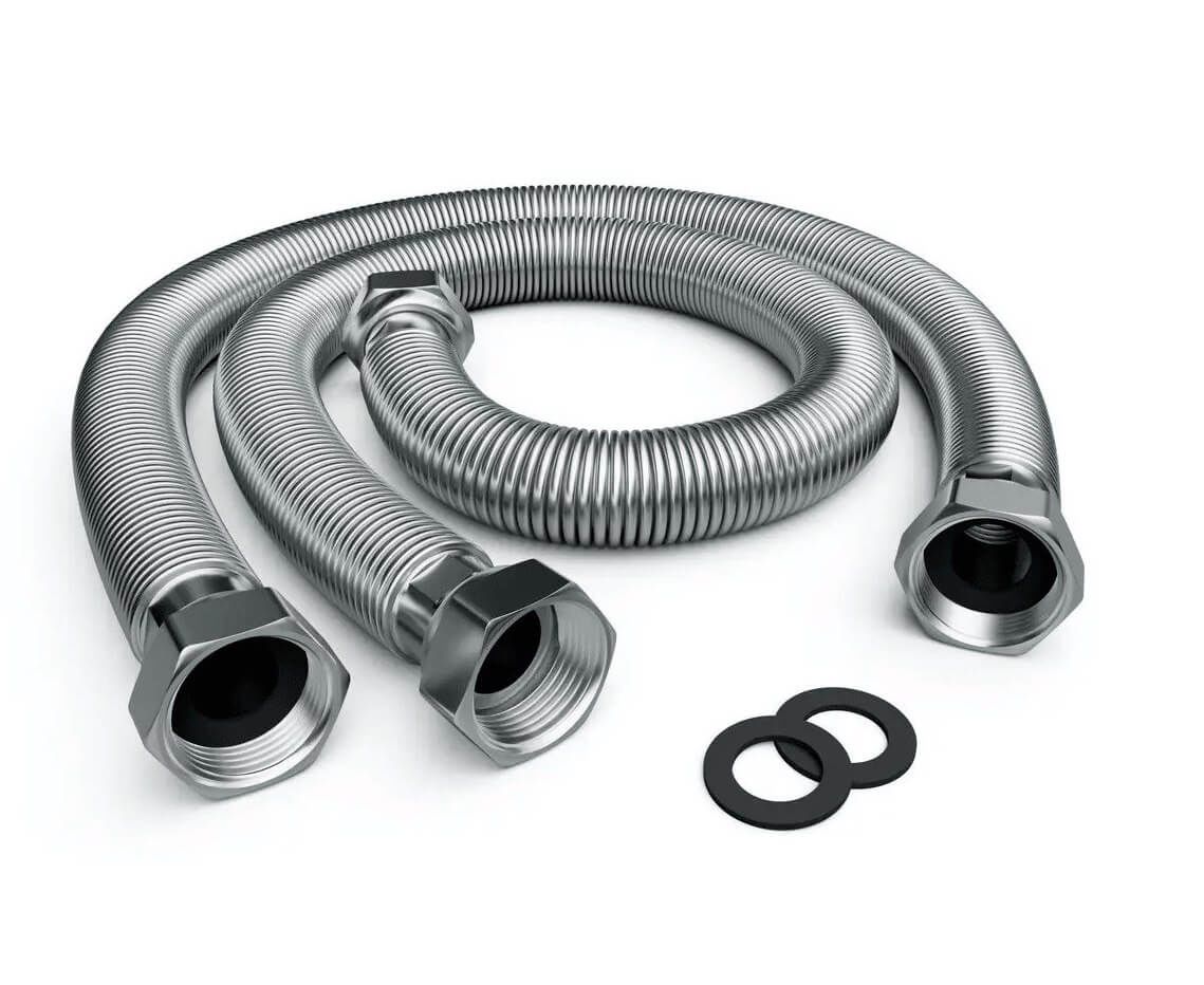 Эластичные гидравлические шланги для водяных завес и тепловентиляторов VTS. Производство Польши. Шланги совместимы со всеми моделями тепловентиляторов VOLCANO и водяными занавесами WING. Шланги предлагаются в виде набора, состоящего из двух гибких гидравлических шлангов (внутренняя резьба ¾) и четырех прокладок. Длина 60 см с возможностью растяжения до 90 см.