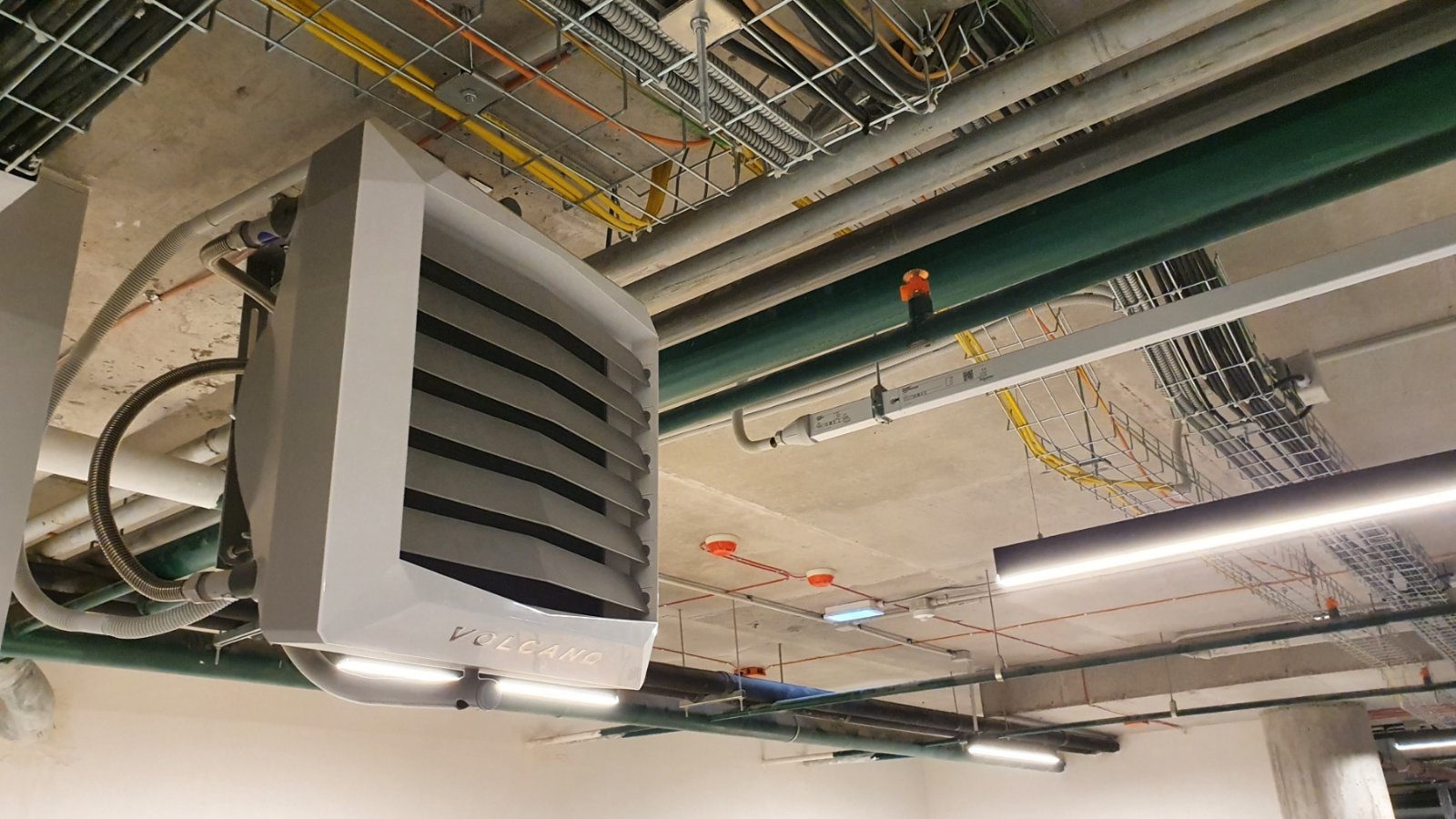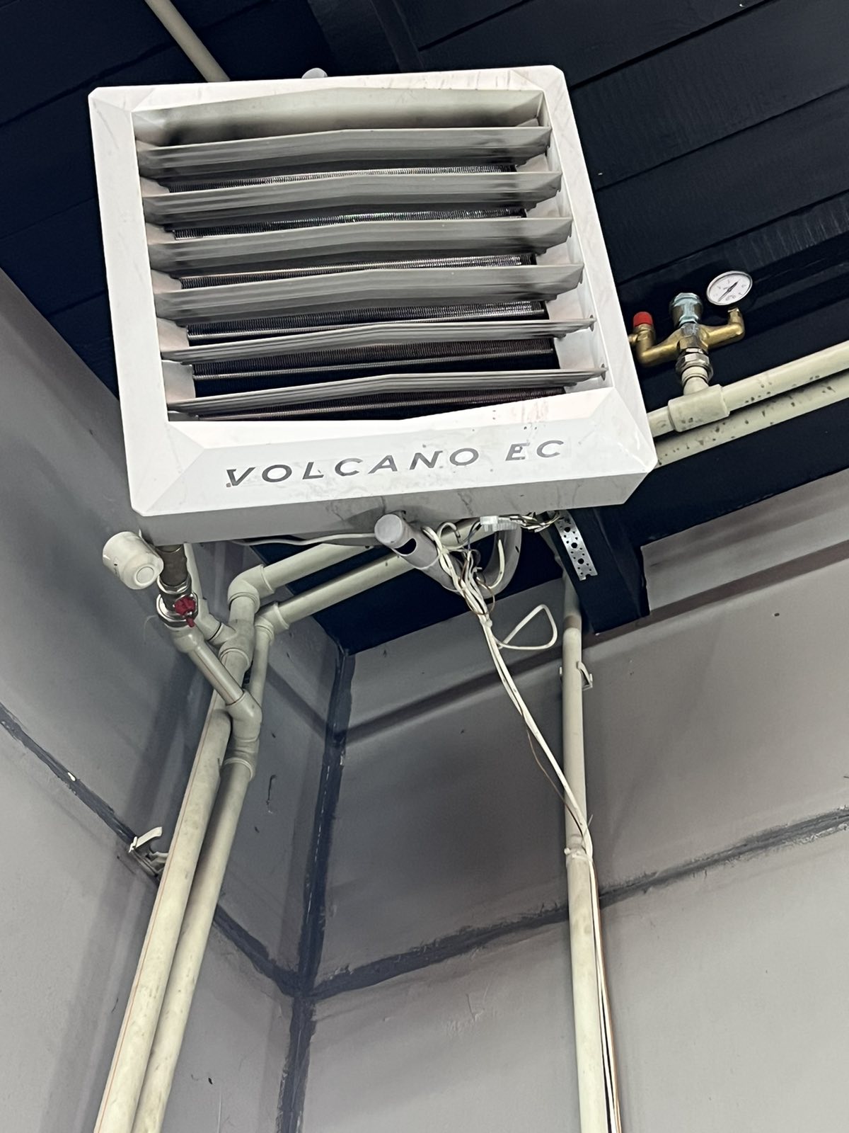 Воздушно-отопительные агрегаты Volcano производства польской компании EuroHeat представляют собой водяные тепловентиляторы, т.е. тепловентиляторы, которые для нагрева воздуха используют 90-градусную воду, нагретую любым источником тепла (локальный котёл или городская сеть теплоснабжения). По сути, это водяные калориферы с вентилятором в одном корпусе.
